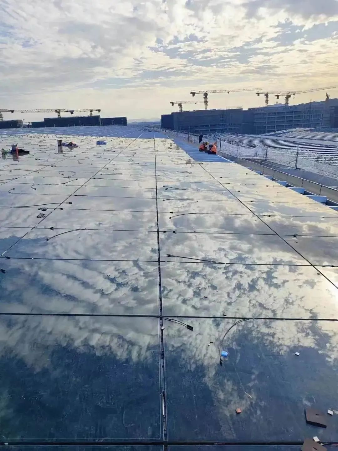 一塊塊發(fā)電玻璃在太陽下閃爍著耀眼的光芒
