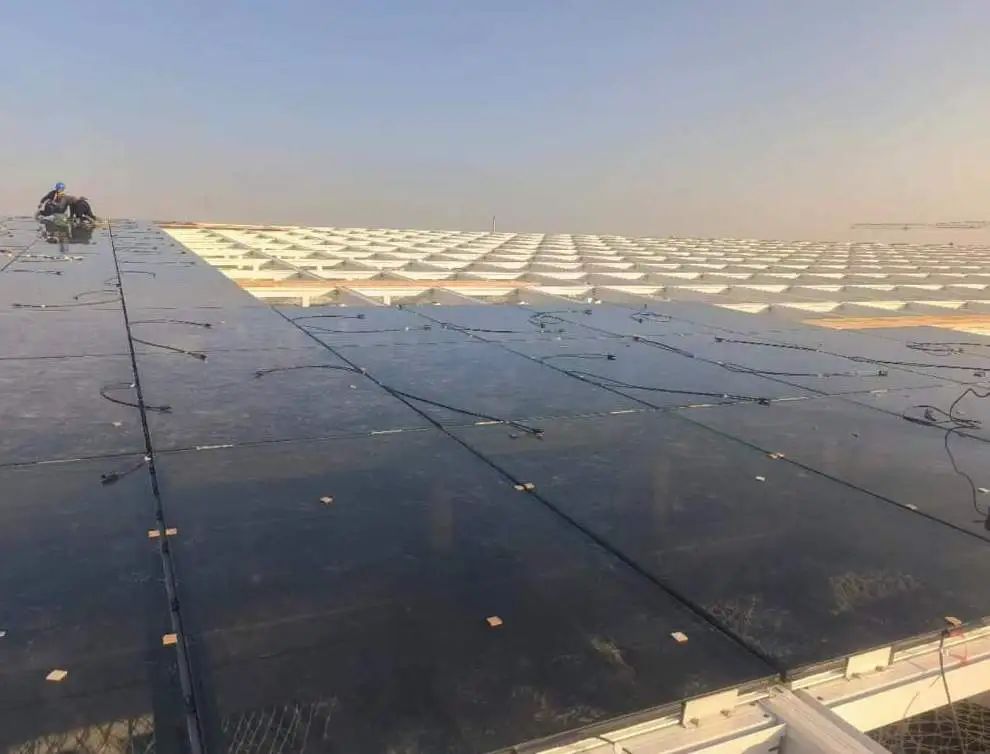 項目采用規(guī)格1180*1980mm碲化鎘發(fā)電玻璃。室內(nèi)室外條件下,碲化鎘光伏玻璃都具有很好的穩(wěn)定性和弱光性,在清晨、傍晚、積雪、積灰、霧霾等弱光條件下發(fā)電效率遠高于傳統(tǒng)硅光伏組件。