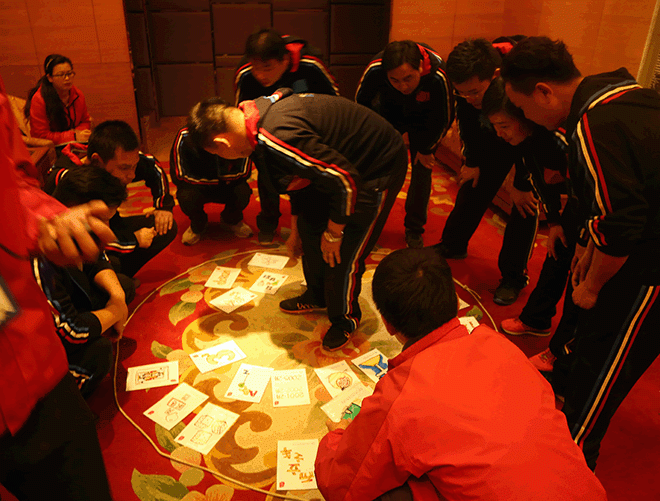 團隊拓展環(huán)節(jié)的名稱雖然超前創(chuàng)新,但拓展的目的在名稱中一覽無遺。一只團隊猶如一個國家,團隊隊長猶如國家大王,對團隊負責,帶領隊伍,指引方向。而三個環(huán)節(jié)的比拼,更是將員工日常團隊中的磨合點盡數(shù)展現(xiàn)出來。在“秣兵歷馬”環(huán)節(jié)中,團隊從高山流水游戲中理清了流程協(xié)作的節(jié)點關系,在日常工作流程中,員工計較別人的工作進度,忽略了自己的工作,只有將流程中自己的工作做到位,才會真正促進整個工作流程的有序進展。而在“壘金字塔”游戲,更是打破了員工固有的僵化思想,告訴員工,復雜的事情簡單做,簡單的事情重復做。在“烽火連城”環(huán)節(jié)中,極速60秒的游戲,帶動了團隊的團結(jié)性,但是團隊除了需要合作還需要有正確的方式方法,錯誤的方法重復使用只會導致游戲的失敗,只有在錯誤中總結(jié)了上一輪的經(jīng)驗并找出正確的解決方法才會有最終的成功。在這個環(huán)節(jié)中,最終“趙國”代表隊憑借著優(yōu)異的領導力和團隊合作,最終只用了52秒時間完成了任務。而“掠奪城池”環(huán)節(jié),比拼的是戰(zhàn)略和團隊協(xié)作,作為團隊的指揮官,只有依靠團結(jié)盟友,及時調(diào)整戰(zhàn)略,才能指揮黑暗中的隊友在戰(zhàn)場上贏得戰(zhàn)爭,只有協(xié)調(diào)一致、統(tǒng)一指揮、有效指揮、有效執(zhí)行才能高效達成團隊共同的目標。