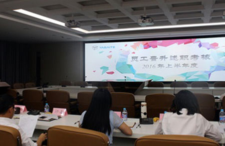 6月20日,雅百特2016年上半年度員工晉升述職考核大會(huì)在總部會(huì)議室舉行。雅百特董事、總工陳建輝,董事、副總經(jīng)理李冬明,董事、財(cái)務(wù)總監(jiān)顧彤莉,副總經(jīng)理、總工張庭,副總經(jīng)理、工程部總監(jiān)李志輝,采購(gòu)總監(jiān)李洪梅及工程部大區(qū)經(jīng)理匡建偉作為評(píng)委出席會(huì)議。