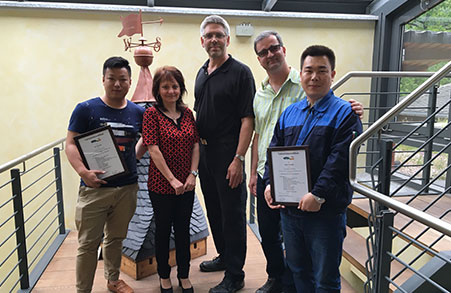 為備戰(zhàn)國(guó)際屋面技術(shù)聯(lián)合會(huì)(IFD)2016年10月在波蘭華沙舉辦的世界屋面青年組冠軍賽,5月下旬,雅百特選派副總工趙永杰及項(xiàng)目部嚴(yán)劉毛到德國(guó)施內(nèi)貝格“取經(jīng)”。